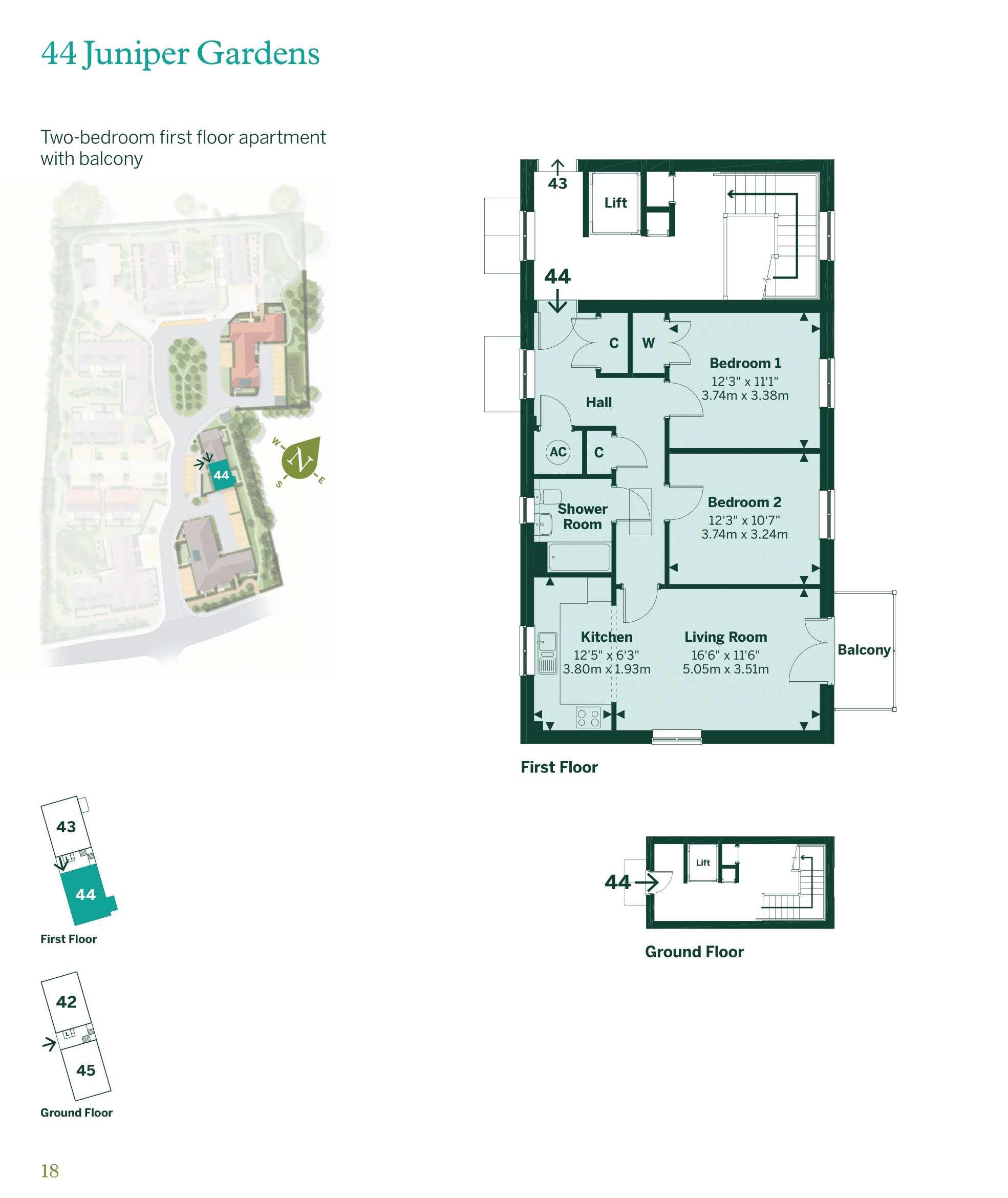 Located on the first floor, this two-bedroom apartment has a private balcony, accessed from the open plan living space, which is the perfect place to sit and relax on a summer’s day. Just off the hallway is an elegant shower…